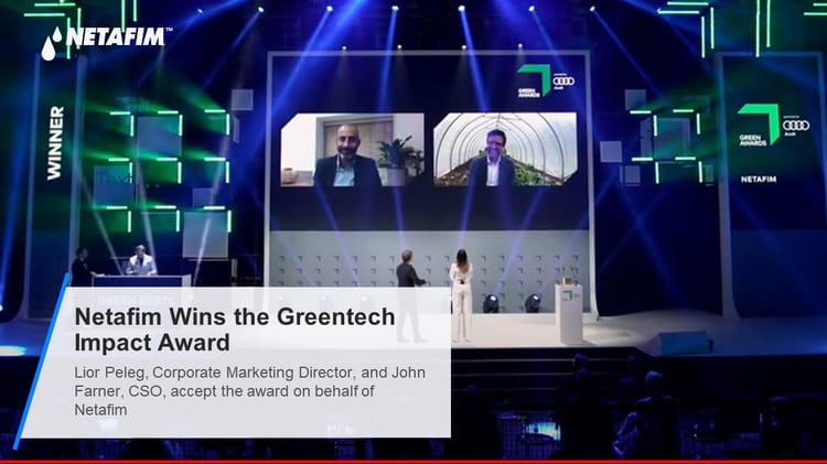 Netafim has been recognized for its ongoing efforts to pair its energy, technology, and passion with a green vision. In 1965 Netafim was the first company to introduce drip irrigation. Over the years it grew into the largest irrigation company in the world, committed to fighting the scarcity of food, water, and land for a sustainable future. Drip irrigation uses micro-emitters that release water in small doses to the plant root zone, saving up to 70% water, which amounts to a global estimated saving of 30-40 Billion m³ of water a year. The technology secures livelihoods for farmers and smallholders across the globe in the face of climate change, allowing them to grow more, with less.